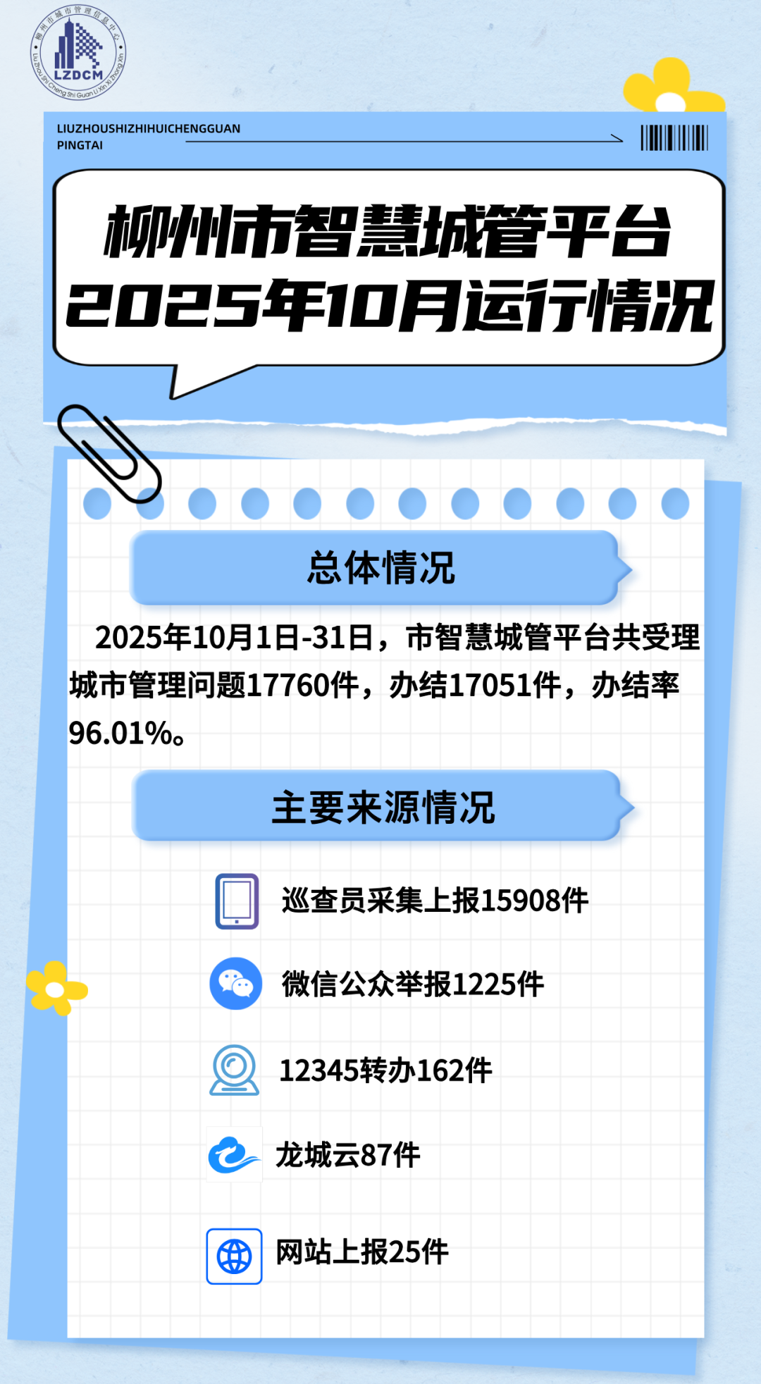 柳州市智慧城管平台2025年10月运行情况