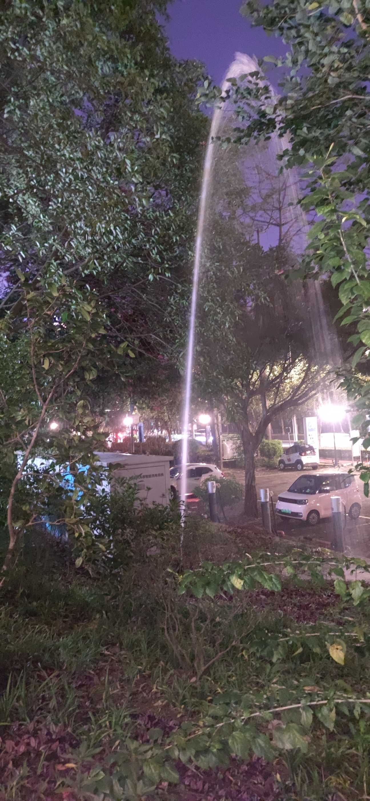 充电站旁水管喷涌,水流不止盼尽快维修